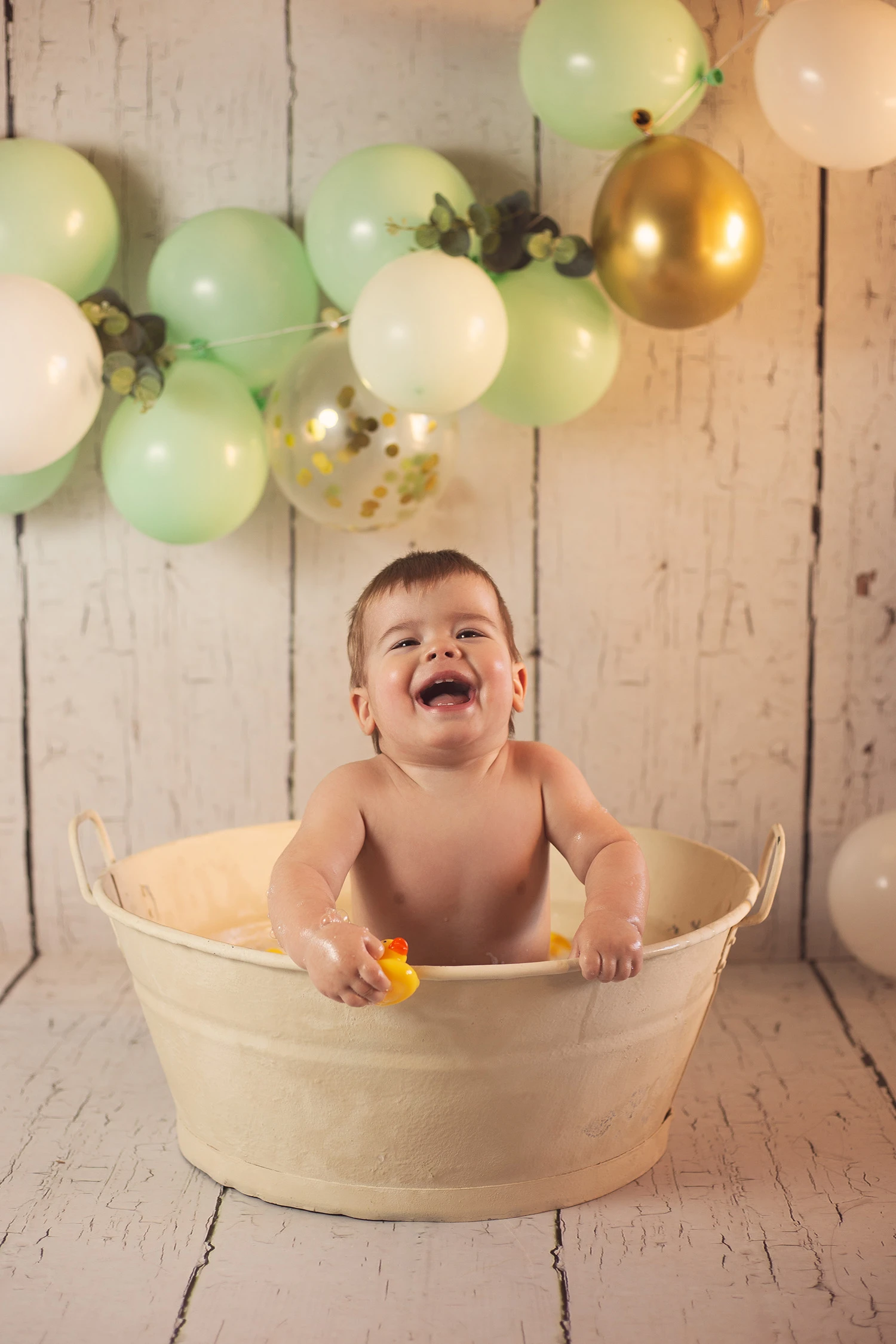 Haremos fotografías de retrato del peque, para que salga limpito y guapísimo, podréis posar con él en las que queráis, después le dejaremos que interactúe con su tarta de cumpleaños y, por último, una vez totalmente pringado, le daremos un bañito calentito (que yo creo que es el momento que más gozan de la sesión... ¡y yo también disfrutando de sus lorcitas!). Como siempre, os entregaré entre 20 y 25 fotografías editadas de la sesión y un pase de imágenes. Además, también tengo un pack que incluye las copias en papel algodón o, si lo preferís, un miniálbum para guardar para siempre esos bonitos momentos de vuestro bebé.